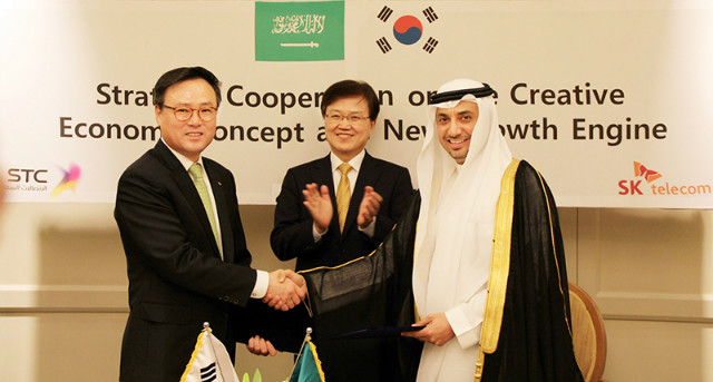 SK텔레콤(사장 장동현, www.sktelecom.com)은 4일(현지시각) ‘한-사우디 비즈포럼’이 열린 사우디 리야드 소재 포시즌호텔에서 사우디텔레콤(Saudi Telecom Company, 회장 압둘아지즈 알수가이아, Abdulaziz A. Alsugair)과 ‘SK창조경제혁신센터 모델 수출 및 신성장 사업 분야에서의 상호 협력’을 위한 협약(MOU)을 체결했다고 밝혔다.