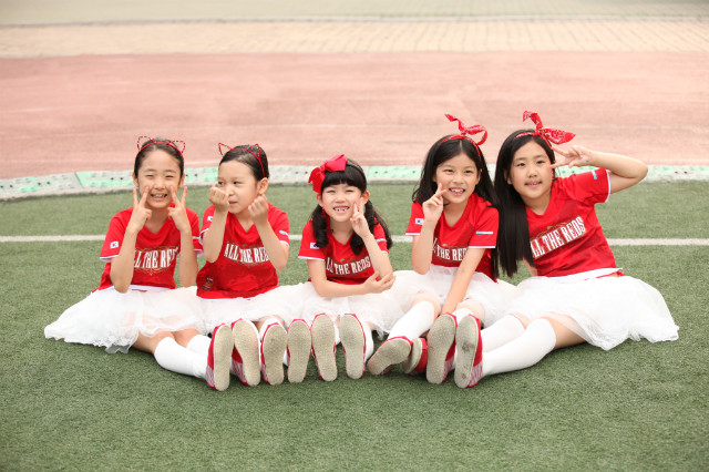 월드컵 한국 축구팀 응원에 나선 키즈그룹 리틀뮤즈 (사진제공: 뮤즈 오디세이)